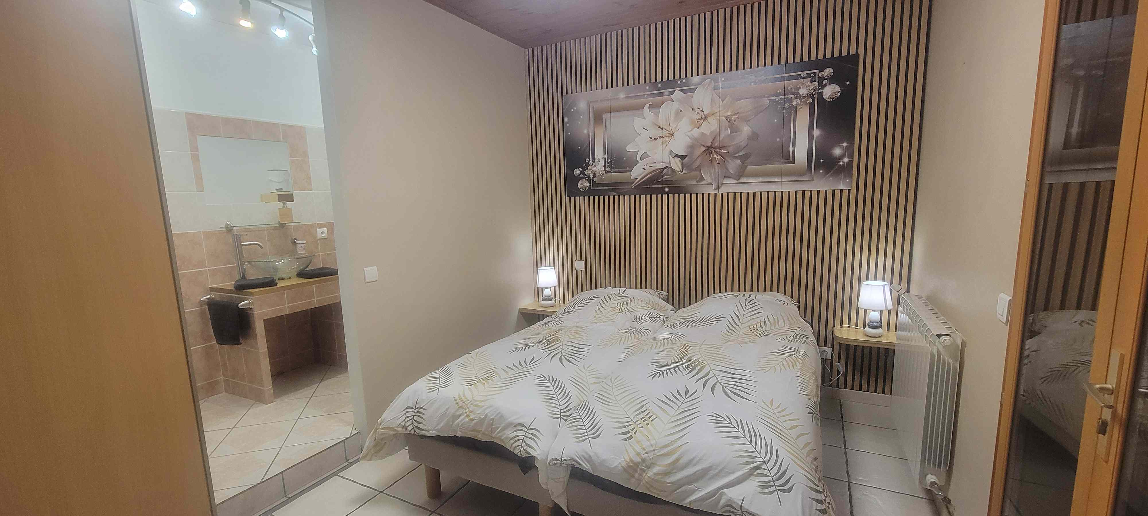 La chambre est attenante à la maison et s'ouvre sur le jardin familial.